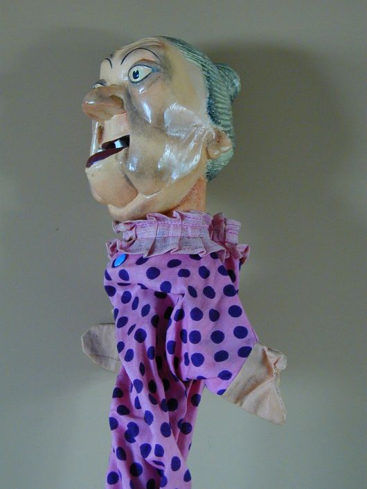 Hexenpuppe. Diese Handpuppen wurden in Ceylon, dem heutigen Sri Lanka, angefertigt. Die Gesichter wurden nach unseren Vorgaben, per Hand geschnitzt und liebevoll bemalt.