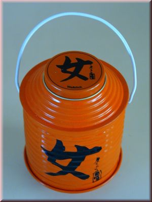 Lampionteedose rot, weiblich mit Stulpdeckel in verschiedenen Farben. Als Teedose oder Aufbewahrungsmöglichkeit für Gewürze, Tee oder Kaffee. Mit einem Henkel zum aufhängen. Die Teedose in roter Farbe ist mit dem chinesischen, weiblichen Zeichen versehen.